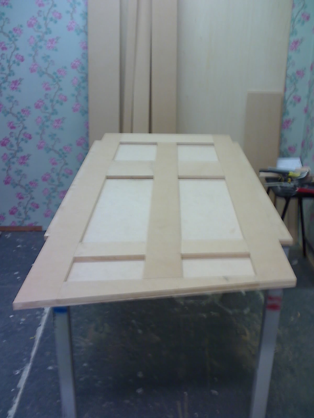 The first door I decided to make was the Gregor's bedroom door. This door would be the most difficult to make as the paneling for the door would have to match the angle of the slant of the ceiling. To measure the door correctly I asked Henry Jones for some assistance.